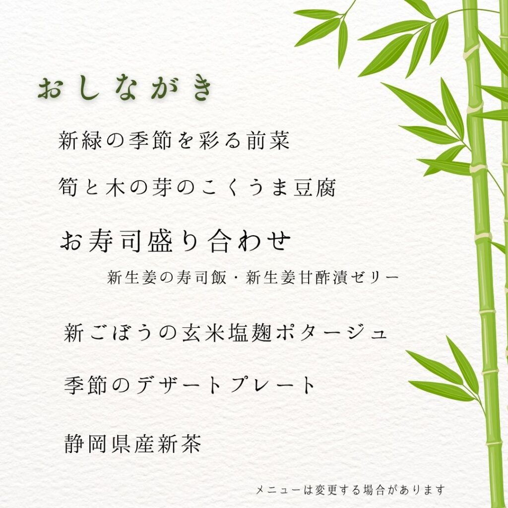 さわやかなメニューでおもてなしいたします